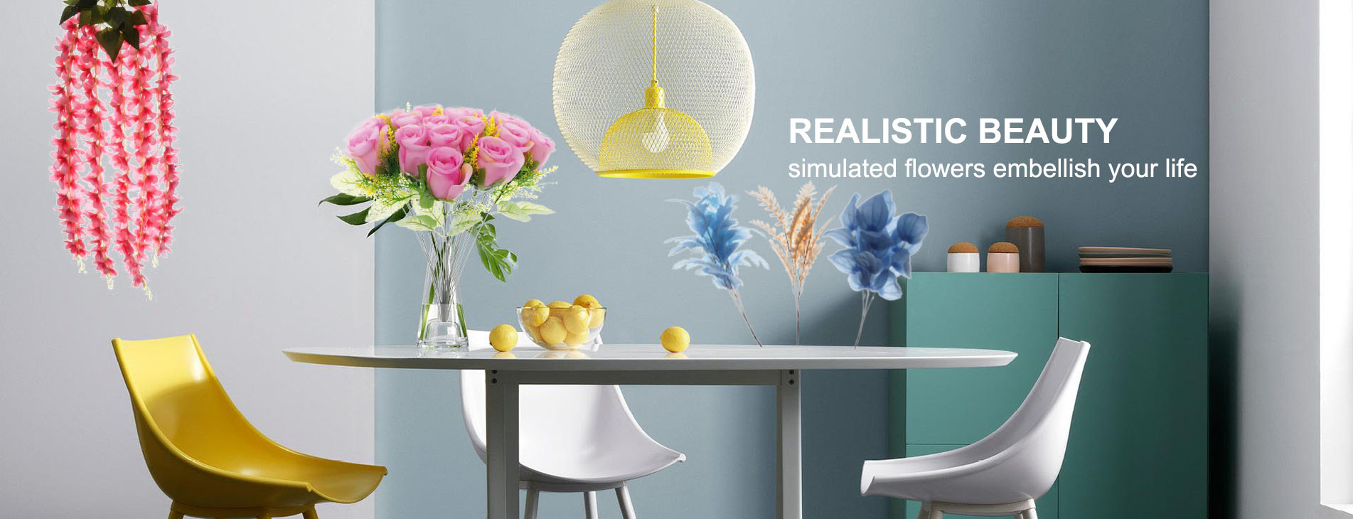 Yongfeng International. specializes in home decor with lifelike artificial flowers and a wide array of complementary items such as glass vases, wooden vases, ceramic pots, wind spinners, scarecrows, and seasonal decorations. Our focus is on providing exceptional faux flowers that allow decorators to transcend seasonal limitations. This means you can enjoy summer blooms even in the depths of winter, and create stunning displays by blending flowers from different seasons.